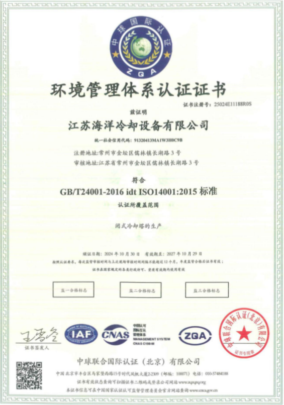 公司主要从事各类冷却塔的研发设计、制造及安装业务,可根据用户需求提供系统的换热解决方案。目前公司已通过多项体系认证,并拥有多项认证证书及荣誉证书。