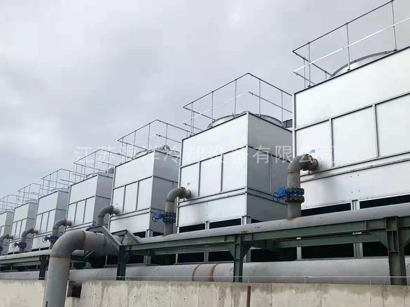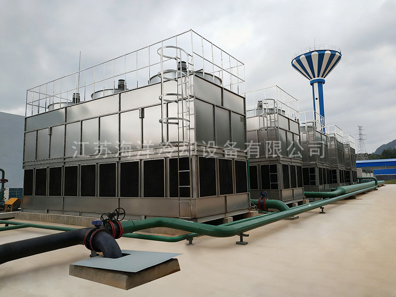 Closed cooling tower is a deformation and development of traditional cooling tower, which is essentially a combination of evaporative cooling tower, cooler and wet cooling tower. The process fluid flows through the pipe, and the water in the collecting tank at the bottom of the tower is pumped by the spray pump, and then sent to the outside of the pipe for uniform spraying, and the indirect heat exchange with the process fluid is carried out. The air flows through the outside of the pipe under the action of the fan, and the heat is discharged out of the tower.